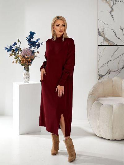 Характеристики:Обхват грудей: 120–140 смДовжина: 118 смРукав від горловини: 80 смЗнизу – розріз збоку (28 см)На рукавах стильні розрізи для пальців