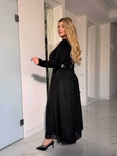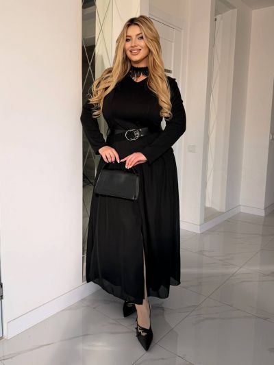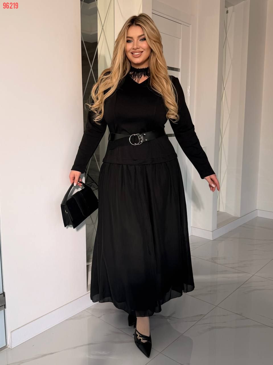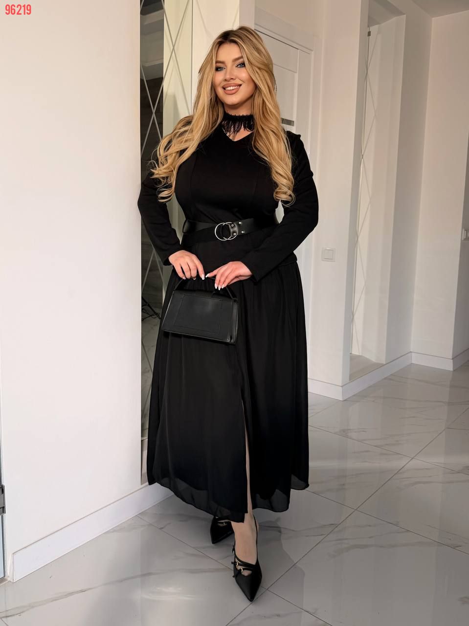 Сукня з французького трикотажу та шифону на підкладці Елегантна, легка та жіночна – ідеальний варіант для заходів, свят, дня народження або гарних вечорів. Шифон створює ніжний струмуючий ефект, а французький трикотаж робить посадку комфортною та приємною до тіла.