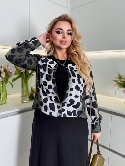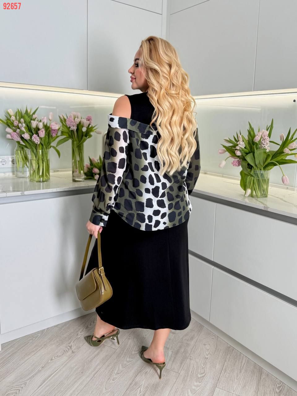 Подовжене плаття вільного крою з імітацією сорочки: на грудях та рукавах ґудзики , сорочка пришита до плаття по верху та по низу. Цікава ідея крою приверне увагу , можна поєднувати з класичним та спортивним взуттям.