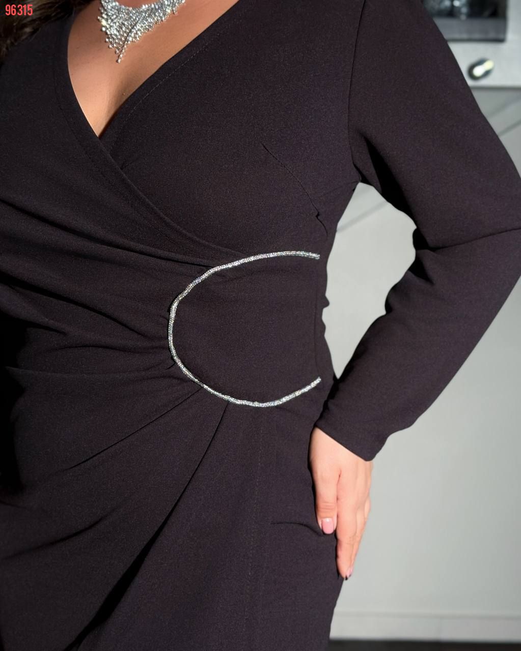 Стильна сукня з ефектом запаху та виразною прикрасою на талії – створена для святкових подій та вечірніх виходів.