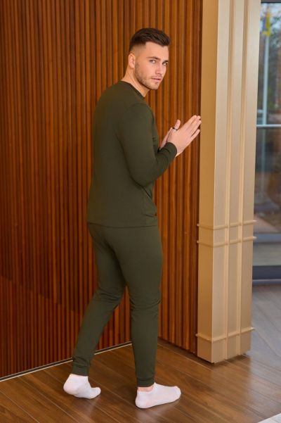 Любимо змінюватись на краще та створювати для Вас щось новеньке. Пропонуємо Вам чоловічу термобілизну, яка продумана до дрібниць та створена, щоб Вам було комфортно. В комплект входить кофта вільного крою з рукавами на манжеті та окантовкою горловини, а також облягаючого крою штани на резинці з імітацією ширінки. Низ штанів йде на манжеті. Комплект термобілизни ідеально підходить для того, щоб одягати його під низ, завдяки тонкому матеріалу який чудово зігріває та майже не відчувається.