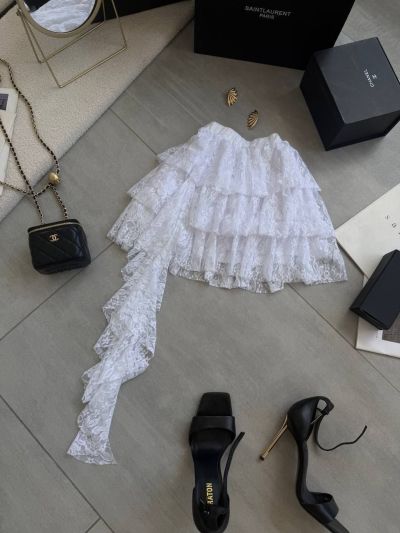 Фасон: багатоярусний крій з асиметричним воланом збоку