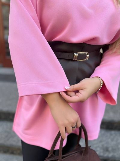Вільний крій, спущена лінія плеча, розрізи з боків.
