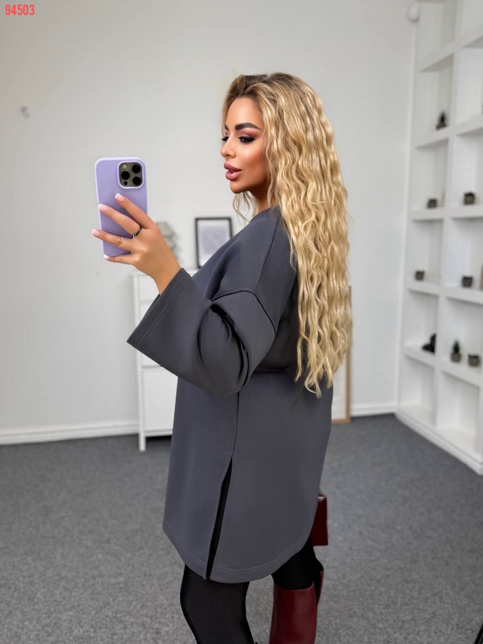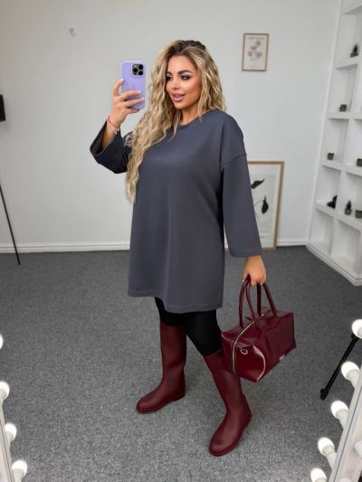 Вільний крій, спущена лінія плеча, розрізи з боків.та кишень.Рукав 3/4.