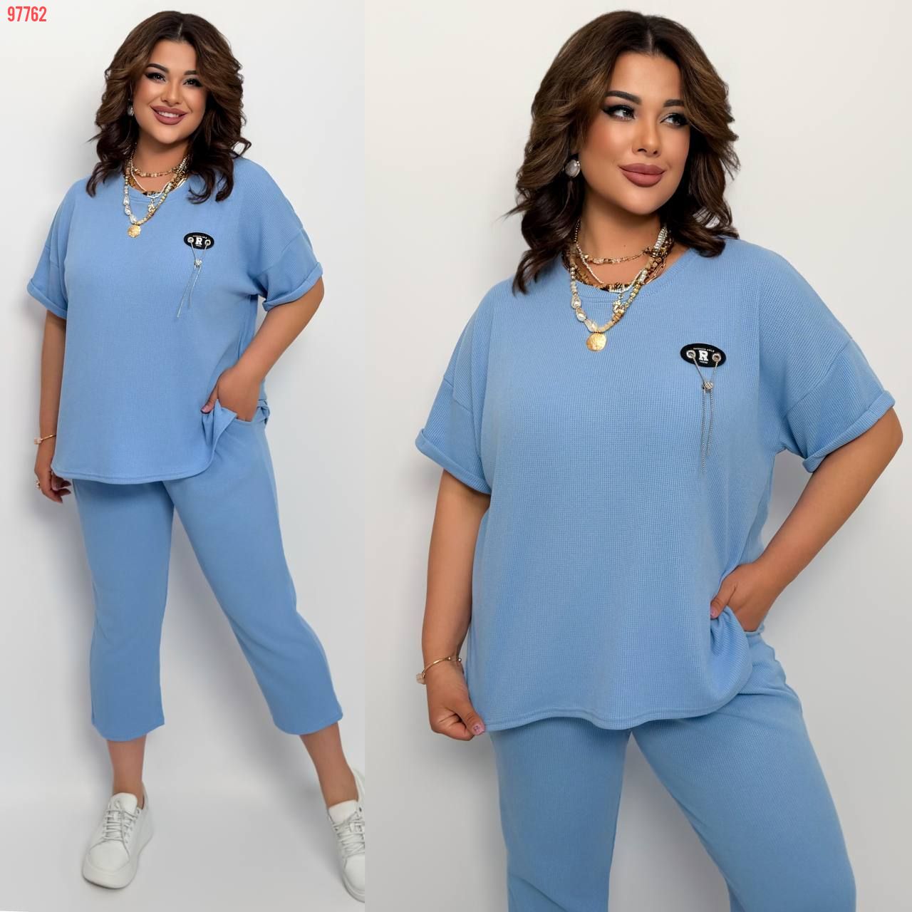 Вільний спортивний костюм з трикотажу «Вафелька» блакитний №97762