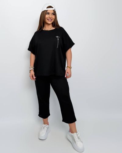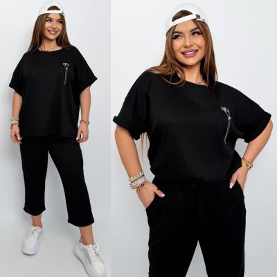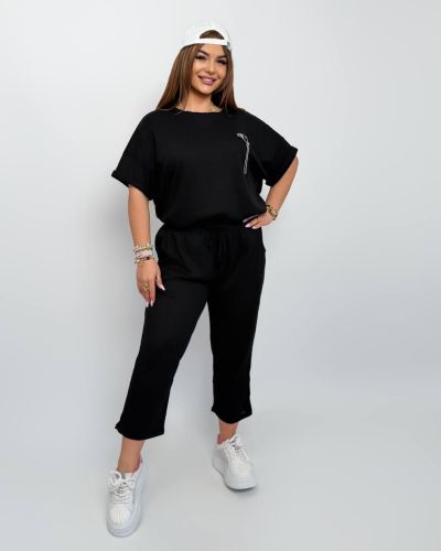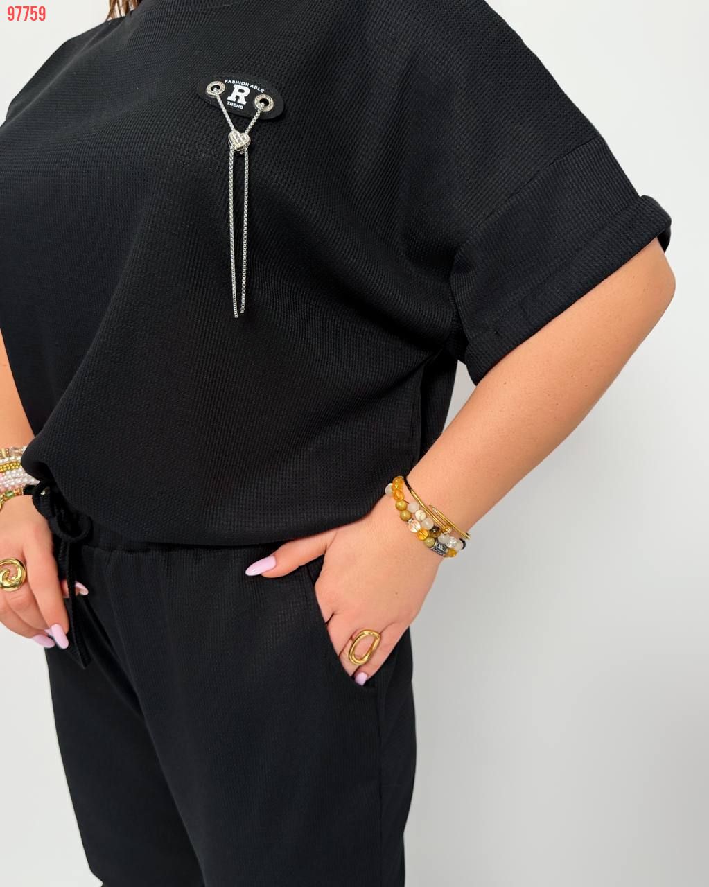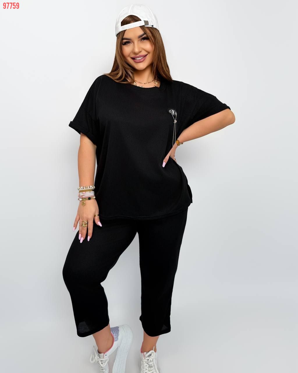 Вільний спортивний костюм з трикотажу «Вафелька» чорний №97759