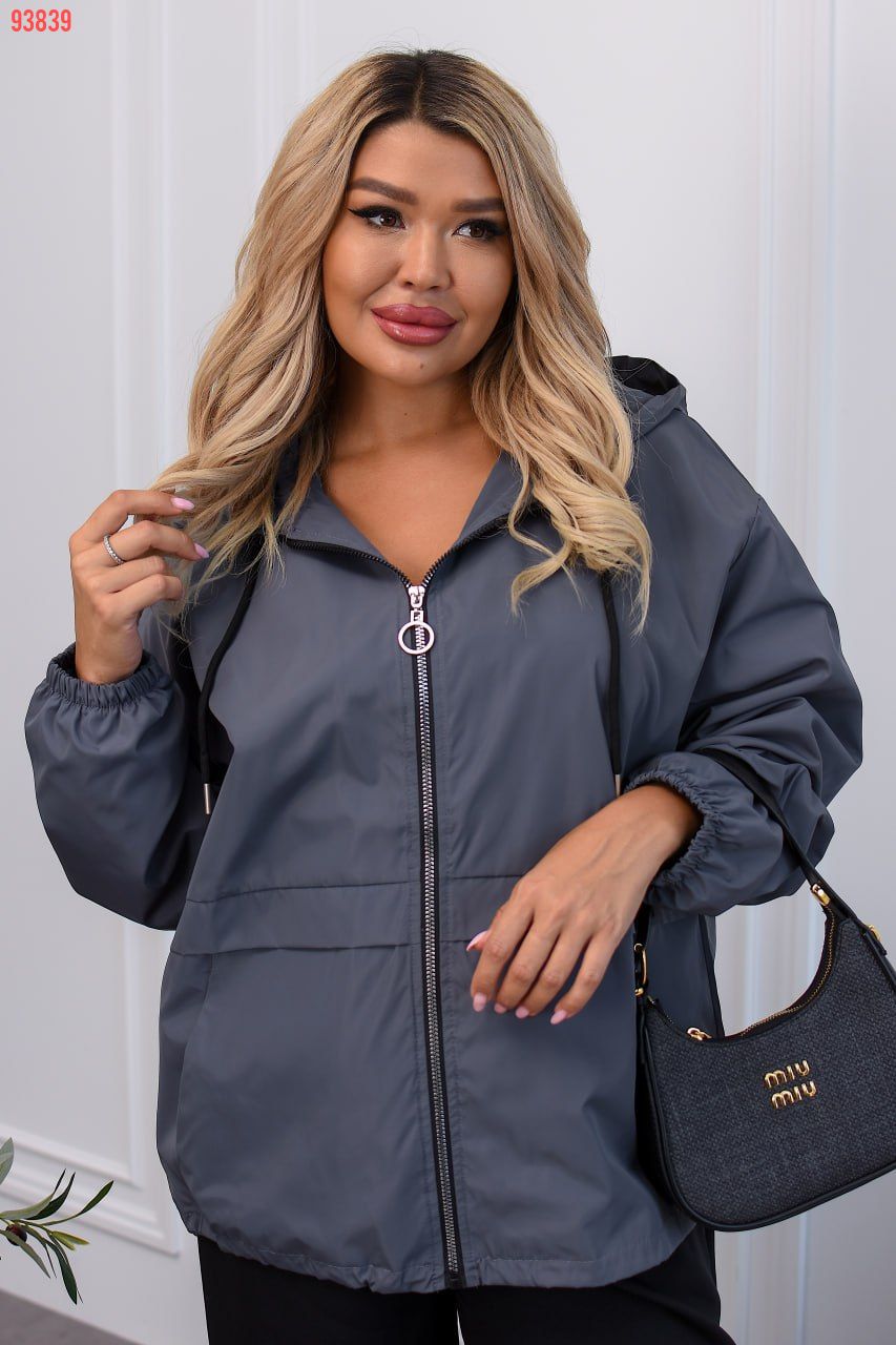 Вітровка з якісної плащової тканини на підкладці: прорізні кишені, рукав реглан, застібка на блискавку по всій довжині, пришивний капюшон, низ із фіксатором для регулювання посадки.