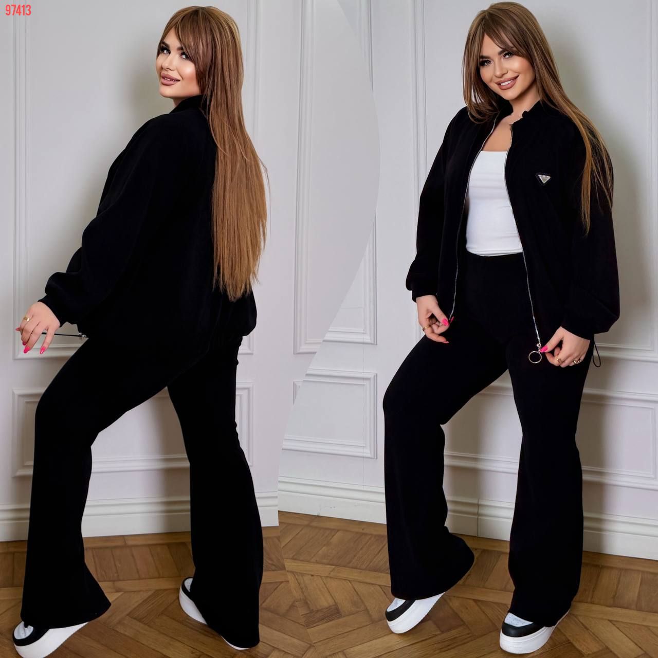 кофта на змійці з кішенями, по низу фіксатор з утяжкою + штани прямі до низу розширені , з посадкою вище середнього. На поясі гумка.