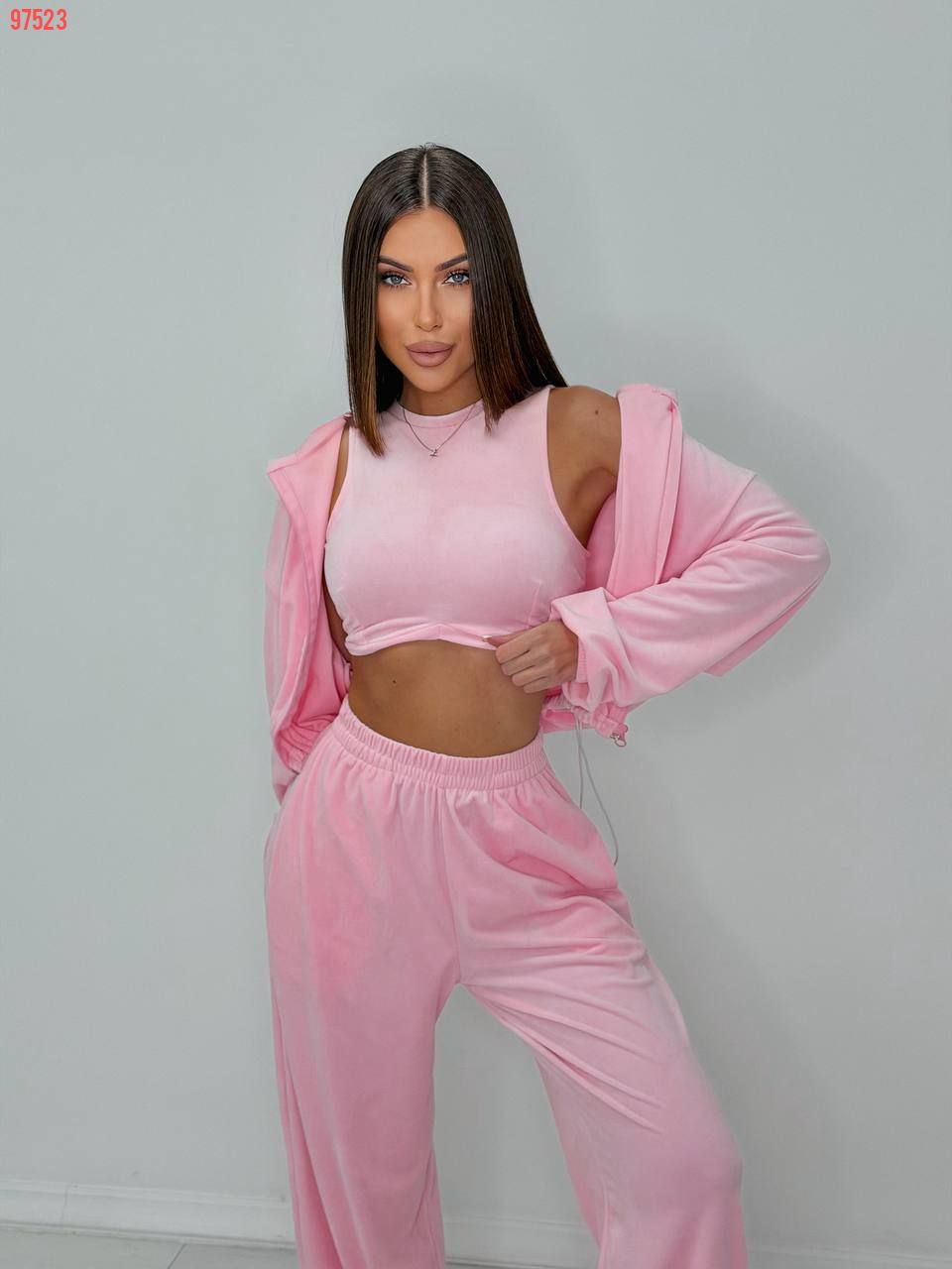 Наша новинка - костюм трійка який складається зі зручного худі на кулісці, стильних штанів які можна носити як джогери і як палаццо і топу. Костюм створений з високоякісної, щільної тканини, яка забезпечує комфорт і зручність