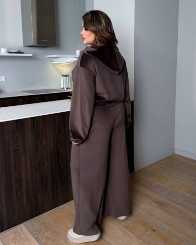 52-54Кофта: ог 132 см, спинка 64 см, плече 26 см, рукав 53 см.Брюки: от 76-116 см, об 132 см, довжина 111/77 см.