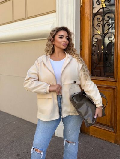 58-60 ог 150 см, спинка 68 см, рукав 75 см.